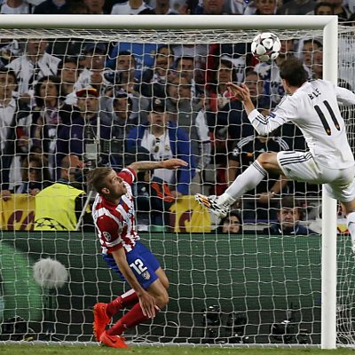 Wales and former Spurs winger gets a crucial goal to put Real Madrid 2-1 up v Atletico. Real went on to win the game 4-1, with goals from Sergio Ramos, Marcelo and Cristiano Ronaldo. It's the record tenth time Real Madrid have won the European Cup. This clip is originally from 24 May 14.