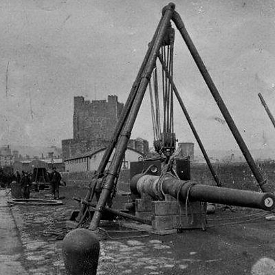 The townland of Kilroot sits on the mouth of Belfast Lough, near Carrickfergus. On a clear day you can see over the Irish Sea to Scotland. During the war Kilroot was deemed an ideal spot for an artillery battery to protect Belfast from German invasion by sea. It was complemented by Grey Point Fort, at Helen's Bay, on the other side of the lough. As local historian Philip Orr explains, no vessel could get past the Kilroot artillery battery without permission. Location: Kilroot, County Antrim, BT38 9BT Image of cannon for Kilroot delivered at Carrickfergus circa 1910 Image courtesy of Nigel Thompson