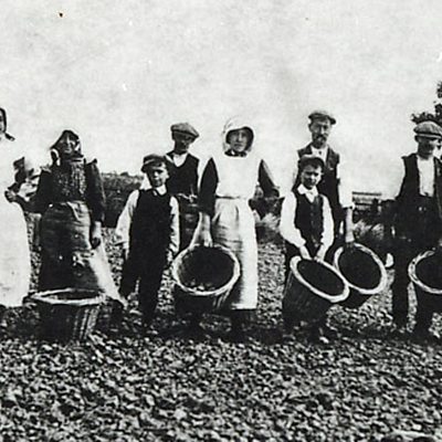 The war years saw a drastically reduced workforce for Lincolnshire’s farms. Conscription took many men off the land. The 1915 Sleaford Agricultural Census gives an insight into the struggle some farmers had. Under the heading Casual Labourers many responded - none to be had. More farms increasingly relied on women, which led to the creation of the Women’s Land Army in 1917. By the end of that year there were over a quarter of a million women working as farm labourers. Irish gangs continued to work in Lincolnshire’s fields and children were released from school to help. It wasn’t only men who left our farms to go to war – horses were also needed on the front line. This was a time when mechanisation had not taken off fully and the numbers of tractors in Lincolnshire were few. Wheat and oat prices were guaranteed with the introduction of the Corn Production Act of 1915. The rise in potato prices during wartime encouraged growers to increase their yields. By the end of the war thousands of acres of pasture land had been converted to crop growing. Location: The Fens, Lincolnshire NG34 Image: A ‘potato gang’ (1914), courtesy of Lincolnshire Archives