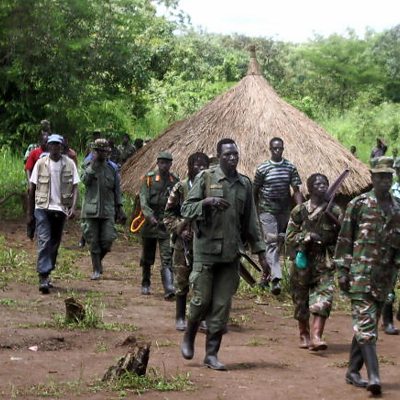 Scores of women, children and fighters have been released by the Lord’s Resistance Army. What’s behind the move? David is a former LRA child soldier who escaped from Joseph Kony in 2002, and Ben Keesey is CEO of Invisible Children, an organisation founded in 2004 to bring awareness of the activities of the LRA. (Photo: A column of around 40 Lord's Resistance Army (LRA) fighters emerging from a thick bush at Ri-Kwangba on southern Sudan's border with the Democratic Republic of Congo. Credit: STRINGER/AFP/Getty Images)