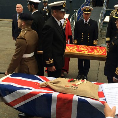 Cunard's Queen Mary 2 arrived in Southampton with a very special cargo. It's the final sandbag to make the journey from the First World War cemeteries in Belgium containing soil from those sites. The sandbag's arrival, and its subsequent onward journey to The Guards Museum in London, marks the culmination of a project which begun several years ago. It was intended to build a Memorial Garden containing soil brought back from every battlefield in Flanders where soldiers of the seven regiments of the Household Division died in World War One. ÃÛÑ¿´«Ã½ Radio Solent reporter Neil Sackley was alongside as the liner docked at first light.