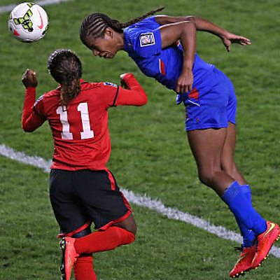 Trinidad and Tobago are just one game away from becoming the first Caribbean team to make the final stages of the Women's World Cup. However their campaign to qualify for Canada 2015 was nearly derailed when the team ran out of money earlier this month. They could only continue thanks to donations from the football community including rivals Haiti! Caroline Rigby has been following their incredible story. Photo: Shanna Hudson #15 of Haiti heads the ball away from Janine Francois #11 of Trinidad and Tobago during the 2014 CONCACAF Women's Championship October 17, 2014. Trinidad and Tobago defeated Haiti 1-0. (CREDIT: Jonathan Daniel/Getty Images)