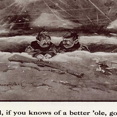 鈥淲ell, if you knows of a better 鈥榦le 鈥 go to it鈥︹ These are the words of a cartoon drawn during WW1 which connected so truthfully with the resigned humour of soldiers in the trenches that it became a catchphrase used by world leaders as well as the general public. The cartoon is a simple one, which is perhaps why its humour still rings true today. Two bareheaded soldiers, up to their chests in a shell hole, bleakly survey the grim moonscape of the battlefield around them. Nearby, an unexploded shell is seen; its nose threateningly buried in the mud. One looks to the other and utters the now famous phlegmatic line. The 鈥淏etter 鈥極le鈥 cartoon, as it鈥檚 become known, was drawn in Wiltshire in 1915, at Greenhills, now a nursing home in Sutton Veny. The original drawing has survived, and on the reverse has the address "34th Div HQ, Greenhill, Sutton Veny" written in Bairnsfather's handwriting. Its significance as a cartoon, and as a universally accepted comic reference, is well-known. Mark Warby has researched Bairnsfather鈥檚 work. He says that Bairnsfather joined the army at the outbreak of war and was sent to France as a second-lieutenant in the Royal Warwickshire Regiment. In the trenches of Flanders, as a form of amusement to cheer his comrades, he would draw cartoons of a sort on the walls of a farmhouse or sketch his thoughts on scraps of paper and pass them along the trench. From these beginnings came the characters of Old Bill, Bert and Alf and the Fragments From France. Old Bill was Bairnsfather鈥檚 most well-known, iconic, character and would appear regularly in his work, under the banner title, 鈥淔ragments from France鈥. His first published cartoon appeared in The Bystander magazine in March 1915, after he鈥檇 speculatively submitted it thinking it 鈥榳as in their line鈥. Having been wounded serving with the Warwicks; Bairnsfather was attached to the 34th Division from September 1915 until January 1916. He was based at Sutton Veny near Warminster, as a machine gun instructor. By this time Bairnsfather's name was well-known. During the few months he was stationed at Sutton Veny he would have completed many original 'Fragments from France' for publication. Among these was his most famous, 鈥渂etter 鈥榦le鈥 cartoon, published in The Bystander on 24 November 1915. The cartoon was incredibly popular when published, and since then Bairnsfather's caption has been 'borrowed' by other cartoonists and political figures. Bill Tidy is a celebrated modern day cartoonist. He says that Bairnsfather had a rare talent in humorously portraying universal suffering: 鈥淭he acceptance of awfulness, I think, is what comes to soldiers after a while. None of Bairnsfather鈥檚 work is condescending. This is the way people spoke and this is the way they acted. He [Bairnsfather] knows when to drop an 鈥榟鈥 and it works; it stands the test of time.鈥 The cartoonist wrote about his time at Sutton Veny in his second autobiographical work, "From Mud to Mufti" - published in 1919, which recounts his career in the war from 1915 through to the Armistice. Extracts from two illustrated letters written by him at Sutton Veny were also published in another book about him, in 1916. Location: Sutton Veny, Wiltshire Image: Bruce Bairnfather鈥檚 cartoon courtesy of Mark Warby of www.brucebairnsfather.org.uk