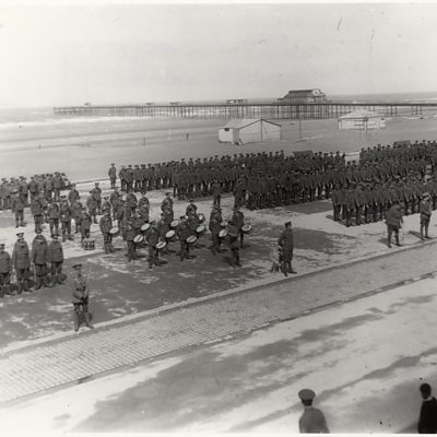 At the beginning of World War One, Irving Henry Jones was 16 years old, he quickly signed up under the pretence of being 21. Leaving behind the mines of Bedwas, South Wales, Irving headed off for military training which began on Salisbury Plain and then swiftly continued in Rhyl, North Wales. Dressed in his buttoned boots and boater on his head, Irving went on parade in Rhyl while waiting for a uniform. He was in his element, particularly when it came to physical training and thrived on activities such as boxing and racing. The men’s training was varied as it wasn’t yet established which division they’d eventually be part of. From gas attacks to marksman training and signalling, a great deal was covered. Rifle drill began with wooden sticks, later switched for dummy rifles before acquiring “the real thing”. While training, Irving’s regiment was subject to a check from “experts” seeking out underage soldiers. Irving explains that despite his young age he was shaving twice a day, so he jutted out his jaw and managed to pull the wool over the inspectors eyes because.. “I wanted to go!”. Irving explains that the majority of the Welch Regiment were miners, which he felt characterised them in a rather unique way. When their promised leave to visit home didn’t happen, the men decided to meet to discuss the matter “just like a meeting on top of the pit”. A decision was made to strike. While on parade on Rhyl sea front, the bugle went for the men to ‘fall in’, but nobody moved! After explaining themselves, the miners’ strike produced the desired result and the soldiers in training were granted their leave home from Rhyl. Irving has fond memories of his training in Rhyl as well as for the local community there. Billeted to No.6 Gronant Street, Irving recalls that he was taken in “like a son”. After specialising as a signaller, it was time to leave for France. The affectionate send off from the community along with gifts and best wishes were a highlight that Irving recalls. It wasn't until September 1915 that Irving boarded a ship to travel to the France, sailing at night in an attempt to avoid being spotted by German submarines. Overcome with seasickness Irving remembers “I wanted to die before I got there”. Location: Rhyl Promenade, LL18 3AY. Image: Royal Welch Fusiliers on the promenade at Rhyl, c.1915. Courtesy of Flintshire Archives