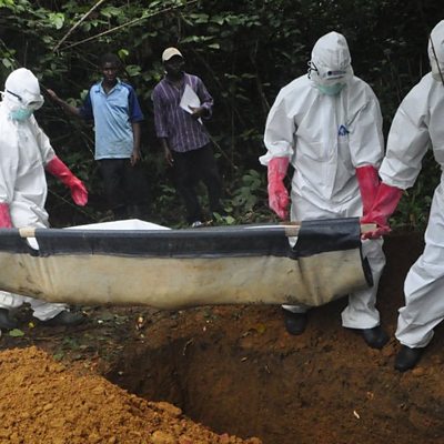 Crucial to ending the Ebola outbreak is the way bodies are buried. They are highly toxic and anyone who dies at home is presumed to be an Ebola victim and their body is collected by special burial teams. This is a big task as the number of people who have died from Ebola in West Africa has passed 8000. The British government is funding over 100 burial teams. The ÃÛÑ¿´«Ã½'s Global Health Correspondent Tulip Mazumbar spent the day with one from the Sierra Leone Red Cross. First broadcast Today programme 7 January 2015.