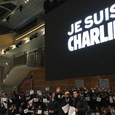 Deputy Mayor of Paris, Patrick Klugman, said Charlie Hebdo has been awarded a Paris citizen of honour award to show the city will "keep on fighting" for democracy. He said this is the first time that a collective group rather than an individual has been given this honour. Mr Klugman added that Paris is "not afraid" and that the French capital is "a free city and will remain free". He spoke on the third day of the search for the gunmen who killed 10 journalists and two policemen in the Paris offices of the Charlie Hebdo magazine. French police have now surrounded a building in a northern town where the two brothers suspected of the Charlie Hebdo massacre have taken a hostage. This clip is originally from 5 live on Friday 9 January 2015.