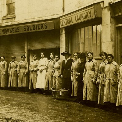 Tunbridge Wells was one of the first stops for soldiers going to, or returning, from the front. Many were billeted in the town with tented encampments on the common. At the time attitudes towards women were such that there were concerns about prostitution and undesirable women hanging around the camps offering to do the soldiers’ washing. It was suggested a laundry be set up. Local woman Amelia Scott, already known for her war work organising relief services such as soup kitchens and hostels, rose to the challenge. Sara Parker spoke to Dr Anne Logan of the University of Kent about this remarkable woman and the laundry with its free mending service run by volunteers. She tracked down Helen Boyce, a Scott family descendent and visited the chapel at Pembury. This is the last remaining building of the old hospital with a memorial window to Amelia Scott; one of Tunbridge Wells unsung heroines. Location: 44 Grosvenor Road, Tunbridge Wells, Kent TN1 2AS Image: Women outside the laundry, courtesy of the Women’s Library