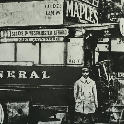 Jamaican-born Joe Clough moved to the UK in 1906. He spent much of World War One driving a field ambulance around Ypres. In 1908 Clough applied for a job with the London General Omnibus Company and is thought to have been the first black motor bus driver in the capital. He drove a B-type bus along the route between Liverpool Street and Wormwood Scrubs. His home depot was the Shepherd’s Bush Bus Garage. In 1915 Joe enlisted in the Army Service Corps and drove a field ambulance for four years. The area in and around Ypres was one of the bloodiest arenas of the war. After the war, on Remembrance Day each year, Joe drove the “Poppy Bus” which collected donations for the Earl Haig Poppy Fund. In the 1940s Joe became a taxi driver and retired, aged 82, in 1968. He died in 1977, aged 91. Location: Shepherd’s Bush Bus Garage, Well Road, Shepherd’s Bush, London W12 8DA Image: Joe Clough and B-type bus, courtesy of London Transport Museum