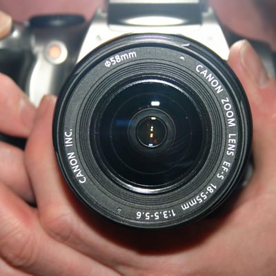 Shan yn trafod ffotograffiaeth gyda Richard Jones sy'n aelod o glwb camera Caernarfon