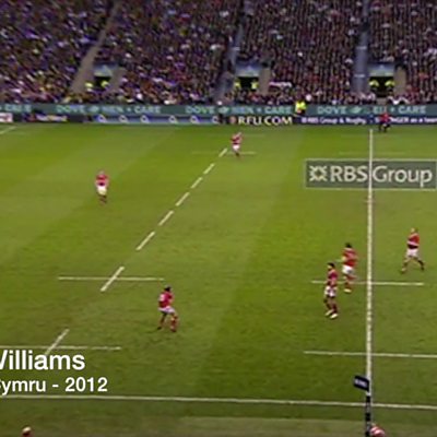Ben Proctor ac Ifan Knott yn sylwebu ar gais Scott Williams yn erbyn Lloegr.