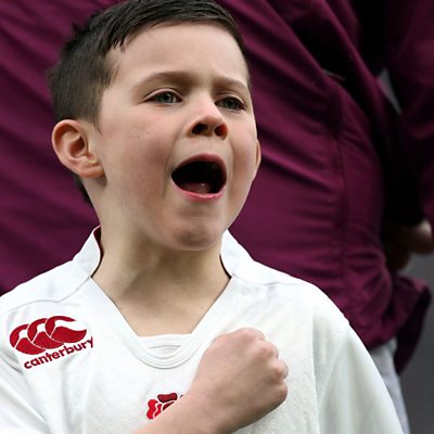 Harry Westlake, 6, from Plymouth went viral on Saturday after he was pictured passionately singing the national anthem before England's game against Italy at Twickenham. Emma Barnett spoke to Harry on 5 Live Hit List and managed to get him to sing us an exclusive rendition of God Save The Queen. This clip is originally from 5 live Hit List on Sunday 15 February 2015.