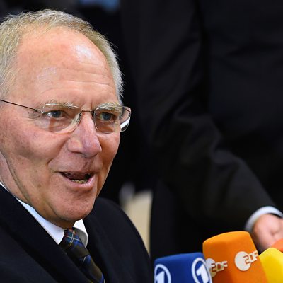 Germany's finance minister Wolfgang Schauble has been a central figure in the recent negotiations of terms of Greece's bail-out. Justin Webb spoke to people who know him to get a perspective on the man who may hold the future of the Euro. They include Professor Michael Sturmer, Chancellor Helmut Kohl's advisor and who worked closely with him in the 1980s; and Katinka Barysch, director of political relations at Allianz insurance company. Schauble was injured in an assassination attempt in 1990, which, says Professor Sturmer, focused his mind. "Before the assassination attempt he was easy going, very good sense of humour. Since then he's very focused, is impatient, he doesn't suffer fools lightly," he said. The profile starts with the news report of his attack in 1990.