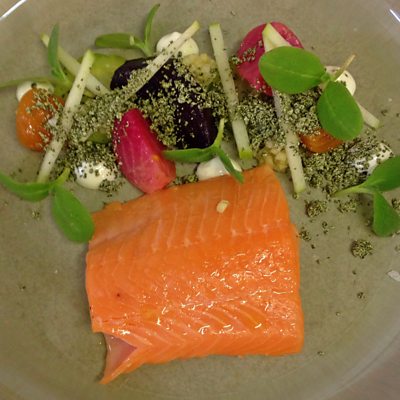 Dish 2 of 3: Phil Yeomans, Head Chef at Marwell Hotel, cooks up his second trout dish.