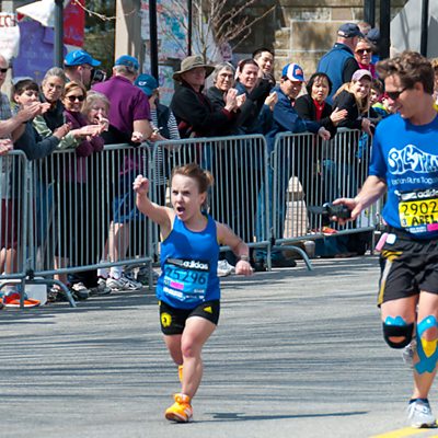 Since high school, Juli Windsor's ambition has been to run the Boston Marathon. It's a hard enough feat for anyone to complete the 26 mile run, but Juli has dwarfism and is 3-foot-9-inches tall - so, she has to take twice as many steps as everyone else. She was determined to complete in 2013 - and was very close to the finishing line when two bombs went off and the race was abandoned. Juli had to find the courage and the strength to run again the following year. Supporting her was journalist David Abel, who had been filming Juli's first attempt, and whose footage of the attack was played around the world. Photo credit: Stuart Merle