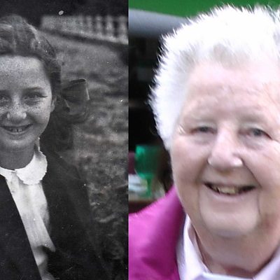 Barbara Hammond was evacuated from London to East Lancashire in 1944. Barbara recalls how she quickly picked up a Lancashire accent, wore clogs for the first time and learned to forecast the weather by looking at Pendle Hill. She says she had tears in her eyes when she had to go back to London. Image: Barbara then, and now