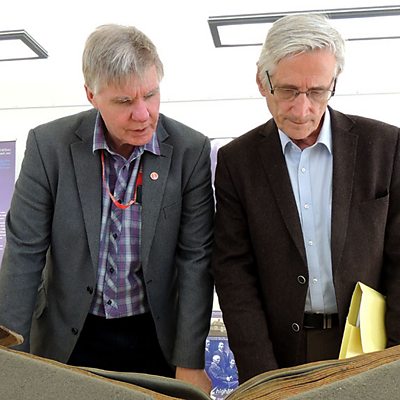 Dòmhnall I MacLeòid a' taghadh na sgeulachdan a chòrd ris à Tasg-lann na Gà idhealtachd.