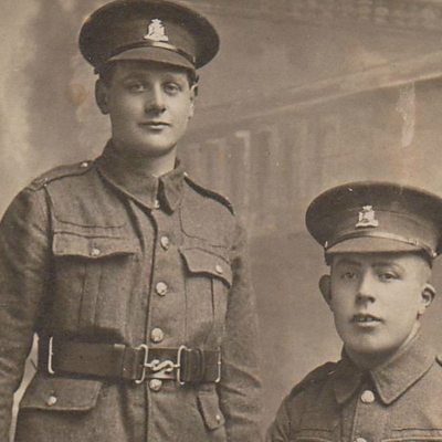 Victorian Yeovil may have been known as the world capital of glove-making, but before World War One nobody would have seriously thought that gloves would seal a man’s fate. However, a single session of the local military tribunal in 1917 determined the future for almost a hundred men; and for two in particular. What’s more it was all down to a huge government order for clothing. On 13 September 1917 the local military service tribunal, sitting in Yeovil Town Hall, was due to consider the cases of ninety-nine men who were appealing against conscription. There were seven grounds on which men could be exempted from serving in the armed forces; it being in the national interest to remain in non-military work, to be about to start certain non-military work, essential training or education, serious hardship, ill health, conscientious objection or employment in a reserved occupation. All the men being considered that day worked in the glove industry. The military representative in the Town Hall, Mr FW Mayo, was concerned about a series of large War Office contracts for gloves. It was vital that the orders were met and completed by the end of the year so that they could be transported to the fighting forces on the Western Front. That meant big business for local firms in the glove-making industry but it also required experienced men to stay behind to complete the work. So, in a highly unusual move, the tribunal decided to allow ninety six of the ninety-nine applicants to stay in the factories until at least 1 February 1918. The cases of just three men were thrown out. Mr Roberts was a 39-year-old manufacturer who was recommended for conditional exemption; presumably a short stay of execution while he put his business affairs in order. The other two were a pair of 18-year-old lads. Reg Sweet had just finished his apprenticeship as a glove cutter and Bert Jennings had recently qualified as a leather dresser. They were new to the industry with little in the way of experience. But crucially for the military authorities they were young, fit men who would have been more useful as replacements at the front than working in the factories of Yeovil. With the Third Battle of Ypres (Passchendaele) raging over the Channel in Belgium, the demand for service supplies and clothing would have been uppermost in the minds of the tribunal’s military advisors. So within weeks Reg and Bert found themselves at the Taunton Military Depot where they were sent to the Wiltshire Regiment and subsequently served together in ‘A’ Company, 2nd Battalion The Wilts. But tragically only one of them returned safely to the soft, undulating landscape of south Somerset they both called home. Reg was a company runner, he was awarded the Military Medal for carrying messages under fire and he survived the shrapnel wounds he received just weeks before the end of the war. However, Bert was less fortunate. He was killed in action on 31 May 1918 and is buried in the Chambrecy British Cemetery near Reims. Today, nothing remains of the place where Reg and Bert’s fate was decided. A fire ripped through the Town Hall in 1935, destroying the landmark building beyond repair and now a row of drab, rather pedestrian-looking shops sits in its place. The only remnant of the Great War era on the site is a small section of wall made of red brick and Yeovil stone, part of the Corn Exchange which sat behind the Town Hall. Location: Site of the former Town Hall, Borough Arcade, High Street, Yeovil BA20 1RX Image: Reg Sweet and Bert Jennings in March 1918, courtesy of the Jack Sweet Collection