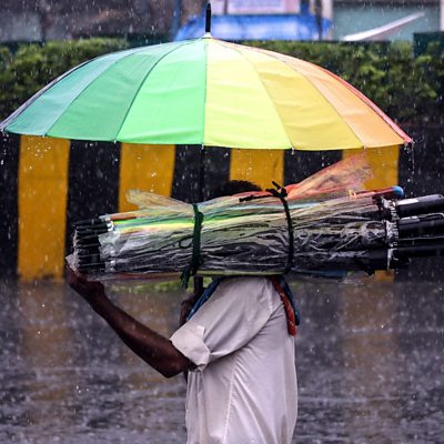 Residents of India's most populous city describe near-deserted streets. (Image umbrella seller. Credit: EPA)