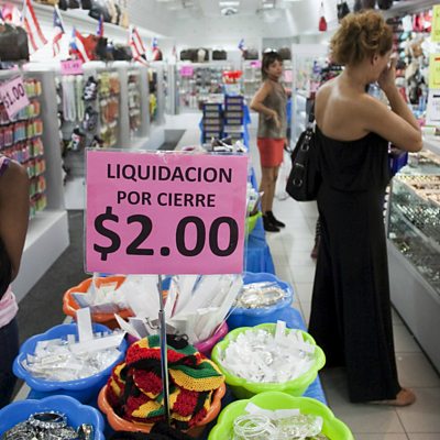 Water rationing and businesses closing down - Puerto Rico has officially gone into default on its $72 billion debt. The ÃÛÑ¿´«Ã½'s Lucy Burton explains the crisis to Chloe Tilley. (Photo: People shop in a store in San Juan, Puerto Rico Credit: REUTERS/Alvin Baez)