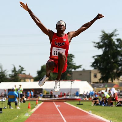 Blind long jump world champion Lex Gillette discusses some of the unique challenges he faces and describes how his sighted guide keeps him running straight and helps judge his take-off. Photo: Lex Gillette takes part in the long jump. Credit: Getty Images