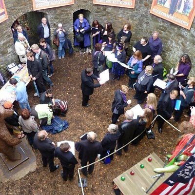Meet Juxtavoices, a vocal group from Sheffield who describe themselves as an antichoir. Members Geraldine Monk and Walt Shaw tell us about the unique way in which the music they perform is often created by a collaboration between all the choir members. The photo is of the group performing in a Bear Pit.