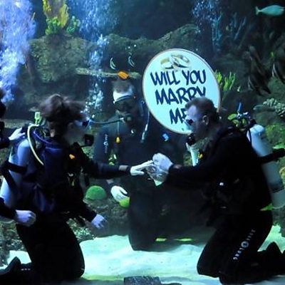Matt Dickinson on a wedding proposal with a difference. Photo: Skegness Aquarium