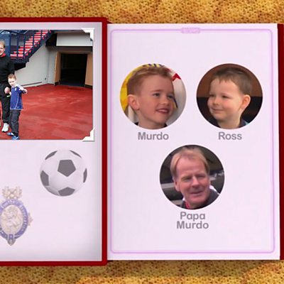 Murdo and his cousin, Ross, chat to Papa Murdo, who was a professional football player.