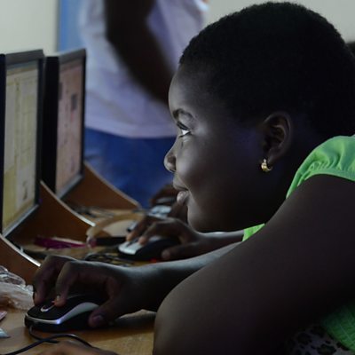 Nima is one of the largest and poorest districts in the Ghanaian capital Accra. The Achievers Club of Nima was set up in 2011 by a young girl who escaped a forced marriage aged 12, and now provides extra lessons for girls in the area. Bola Mosuro visited their classroom on the first floor of a local mosque to report on a coding class for girls. But the tables were turned when 13-year-old Adama took Bola’s mike and proceeded to narrate a tour of the area, and talk about the problems young girls living in Nima face. Image: A student at a coding class in Accra, Ghana. Credit: James Fletcher