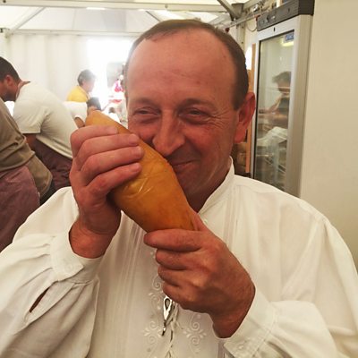 High in the Polish mountains near Zakopane, cheesemaker Wojtek Komperda is part of a long line of shepherds who have been making Oscypek cheese from sheep's milk since the 14th century. For six months of the year they live in small wooden homes, tending to a fire that is never allowed to die out. They mould the ewe’s milk by hand for over an hour and wrap a carved wooden band around it, which imprints geometric markings that are individual to each producer, before hanging it over the fire to smoke until it turns a pale yellow colour. Recently, however, this age old practice has struggled to compete alongside modern cow milk equivalents wrongly labelled and sold as Oscypek. Despite this, Wojtek hopes that authentic Oscypek cheesemaking will be kept alive as he passes his knowledge on to his children, just as his father did to him.
