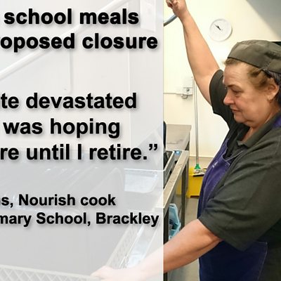 Marjorie Owens, a Nourish cook at Southfield Primary School in Brackley 'devastated' over the proposed Nourish meals service closure. Head teachers in Northamptonshrie say the decision has created uncertainty and more work. The County Council announced the plan last week saying it would save £660,000. Schools have a responsibility to find a new provider who'd be likely to keep on many of the 288 staff affected.