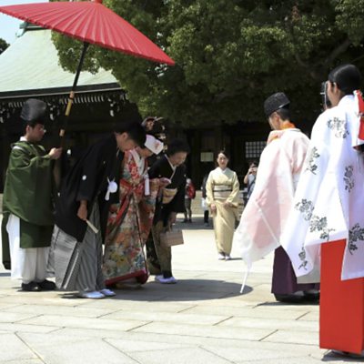 Japan's Supreme Court upheld a two hundred year old ruling that couples must share one family name. As the ÃÛÑ¿´«Ã½'s Mariko Oi explains, some Japanese women had argued the law discriminates against their right to use their maden name. (Photo: A newly-wed couple at a Japanese traditional wedding ceremony in Tokyo. Credit: AP Photo.)