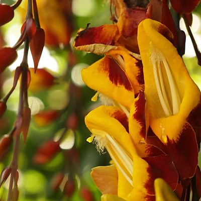 Oxford Universities Botanic Gardens and Harcourt Arboretum project to count down to it's 400th anniversary with 400 plants. Plant 115 is Thunbergia mysorensis a stunning, vigorous vine from southern India where it climbs through trees in tropical montane forests. It has become naturalised in Mediterranean climates and elsewhere due to its popularity as an ornamental plant.