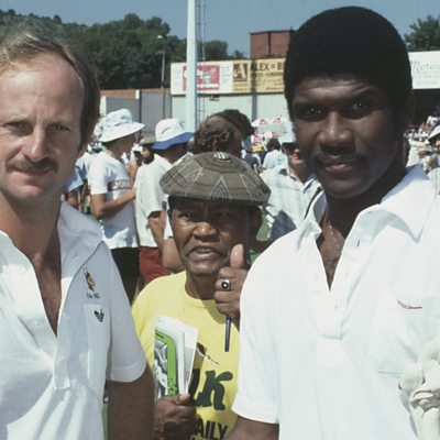 The seventeen West Indies cricketers who toured aparthied South Africa in 1982-83 were applauded as heroes in the Republic but seen as outcasts back home. All were banned for life from playing any form of cricket, and ostracised by their local communities. Nine of the rebels forged new careers, and new lives, outside of the Caribbean. The captain, Lawrence Rowe, now lives in Miami, but returned to Jamaica in 2011 to open the new pavillion at Sabina Park, to be named in his honour. It was changed four months later after a storm of protest. Photo:Cricketers Gary Kirsten of South Africa (left) and Lawrence Rowe of the West Indies in Durban for a one-day international during the rebel tour to South Africa of February 1983. Credit: (Adrian Murrell/Getty Images)