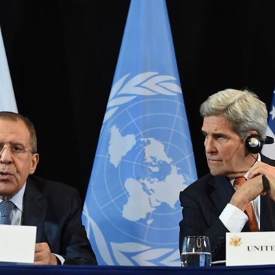 The Washington Post's Beirut Bureau Chief Liz Sly explains the powerplay at work in the Syrian civil war. "It's actually very hard to imagine how things could get much more complicated," she told ÃÛÑ¿´«Ã½ Radio 4's World at One. After almost five years of civil war in Syria, more than 250,000 people have died, and more than 11 million people have been displaced. Both Russia and the US have backed a limited ceasefire, due to begin on 19th February. (Photo: Russian Foreign Minister Sergei Lavrov beside US Secretary of State John Kerry. Credit: AFP/Getty Images)