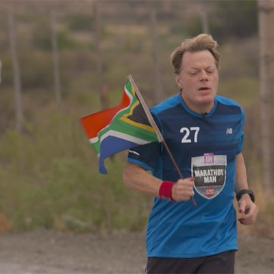 Eddie Izzard speaking live, from marathon number 21 in South Africa for Sport Relief.
