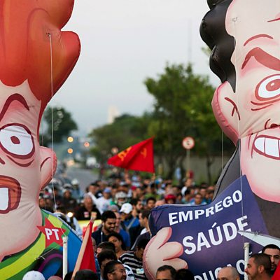 The Petrobras corruption scandal which is engulfing the Brazilian government has laid bare deep tensions in the nation. Candace Piette explains. Photo: Anti-government protesters in Brazil parade inflatable dolls portraying President Rousseff and the opposition senator Aecio Neves. Credit: Reuters