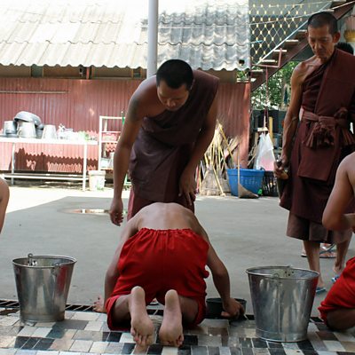 One of the harshest drug treatment programmes in the world has a surprising origin (Image: Monks encourage young drug addicts to vomit at the temple of Wat Thamkrabok, in theThai province of Saraburi)