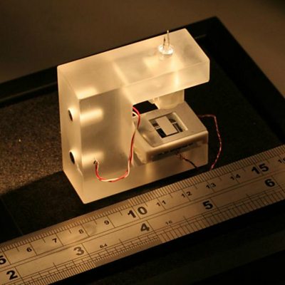 UK researchers have built a stamp-sized device that measures tiny fluctuations in gravity, and could be used to monitor volcanoes or search for oil. The ÃÛÑ¿´«Ã½'s Science reporter, Jonathan Webb, explains how it works. (Photo: The sensor in the middle of the gadget, is the size of a postage stamp. Credit: Giles Hammond, University of Glasgow)
