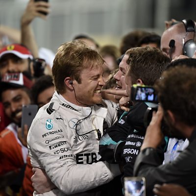 Mercedes' Nico Rosberg cruises to victory at the Bahrain International Circuit. This clip is originally from ÃÛÑ¿´«Ã½ Radio 5 live Formula 1 on Sunday, 3 April 2016.