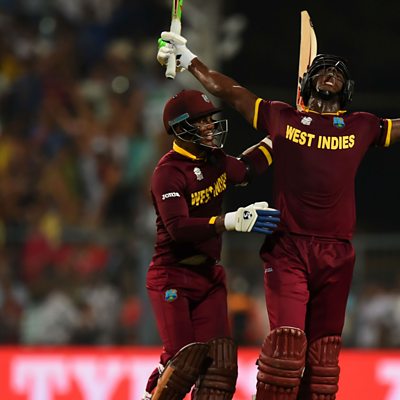 Carlos Brathwaite says Ben Stokes' career shouldn't be defined by the final over of the World T20 final in which Brathwaite hit four consecutive sixes to seal victory for the West Indies. Brathwaite believes Stokes will go to become the best all-rounder in world cricket. (Image: Ben Stokes watches on as Carlos Brathwaite and Marlon Samuels celebrate winning the World T20 for the West Indies. Credit: Getty Images)