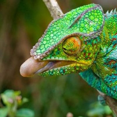 Chameleon tongues are amazing. They fire out at insects at great speed and sit coiled ready for action like a spring. ÃÛÑ¿´«Ã½ Science Correspondent Helen Briggs explains some of the maths of how they work. (Photo: Panther Chameleon about to strike © Science Photo Library)