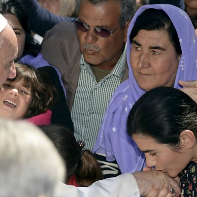 As Pope Francis visited the Greek island of Lesbos to meet refugees there for himself - and take some back to Rome with him - Caroline Hawley met another refugee family which hadn't been quite so lucky. Photo: Pope Francis meets migrants and refugees on the Greek island of Lesbos. Credit: Reuters