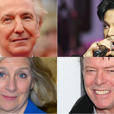 ÃÛÑ¿´«Ã½ TV is to double the time given to its Christmas obituary progamme after the deaths of more than thirty stars including Alan Rickman, David Bowie, Victoria Wood and Prince. Fi Glover of The Listening Project on Radio Four tells us to use our grief for those in the public eye who have died to bring life to our relationships with family and friends. Photos: Alan Rickman, Prince, David Bowie, Victoria Wood credit: Getty images