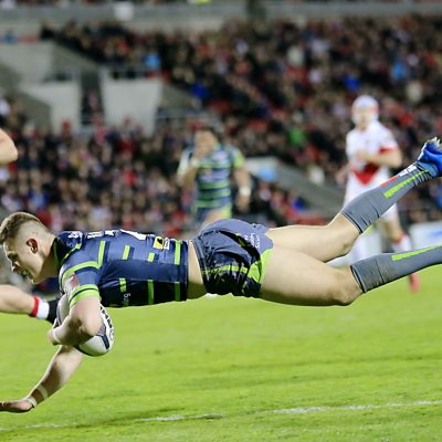 Try action from ÃÛÑ¿´«Ã½ Radio Leeds as Leeds Rhinos lose a remarkable Super League encounter at Langtree Park. {Commentary: James Deighton & Francis Cummins} {Image: SWPIX.com}