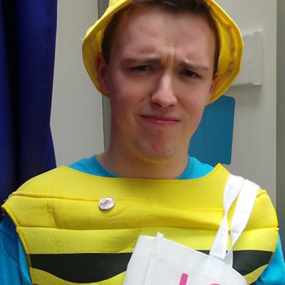 Ben dressed up as a giant crayon for Cancer Research UK's free will service.