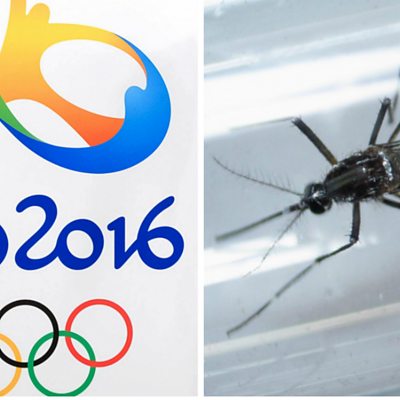 More than a hundred health experts have called for the Rio 2016 Olympics to be postponed or moved because of the Zika outbreak. They made the request in a letter to the World Health Organisation. Professor Amir Attaran of the University of Ottawa is one of the signatories of that letter. (Photo: Rio Olympics logo and Aedes aegypti mosquito. Credit: Reuters, AFP/Getty Images.)