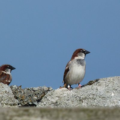 New research from Imperial College London and Sheffield University shows that male sparrows can sense when their female partners are unfaithful, and will punish them by providing less food for their brood. Valerie Sanderson spoke to Professor Terry Burke, who has been studying sparrows on the Island of Lundy for twenty years. (Photo: A host of four sparrows, Credit: Isabel Winney/PA)