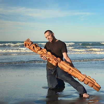 Every day, New Zealander Harlem Shine goes to his local beach in Whakatane with a chisel axe to carve Maori-inspired designs in the driftwood. He spends hours making intricate sculptures which he leaves on the beach. (Picture credit: A J Taylor.)