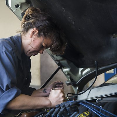 Patrice Banks says she was an "auto airhead" before she left her job as an engineer to fix cars. The Philadelphian mechanic discovered that women in her community wanted to know more about their cars so they didn't have to rely on men to advise them on their vehicles, so she decided to do something about it. Image: Patrice Banks Credit: Ryan Wick