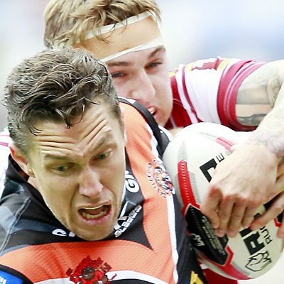 Castleford Tigers coach Daryl Powell following Challenge Cup quarter-final defeat at DW Stadium. {Commentary: Tim Steere & David Woods} {Image: SWPix.com}
